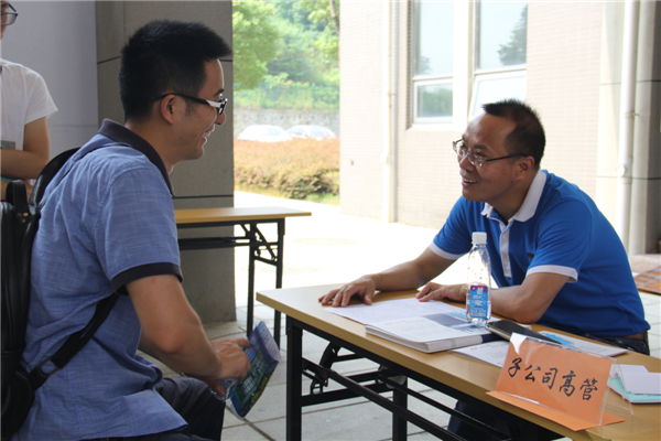 7月30日,宜兴市夏季大型招聘会暨2016届高校毕业生供需洽谈会在市人力资源市场举行。为进一步加强人才队伍建设,优化人力资源配置,公司在现场开辟了招聘专区,人力资源部联合生产部、市场部、营销总部、财务部等各部门组成了强大的招聘团,中超控股董事长杨飞、总经理张乃明携公司高管亲临招聘现场,与广大毕业生面对面交流。