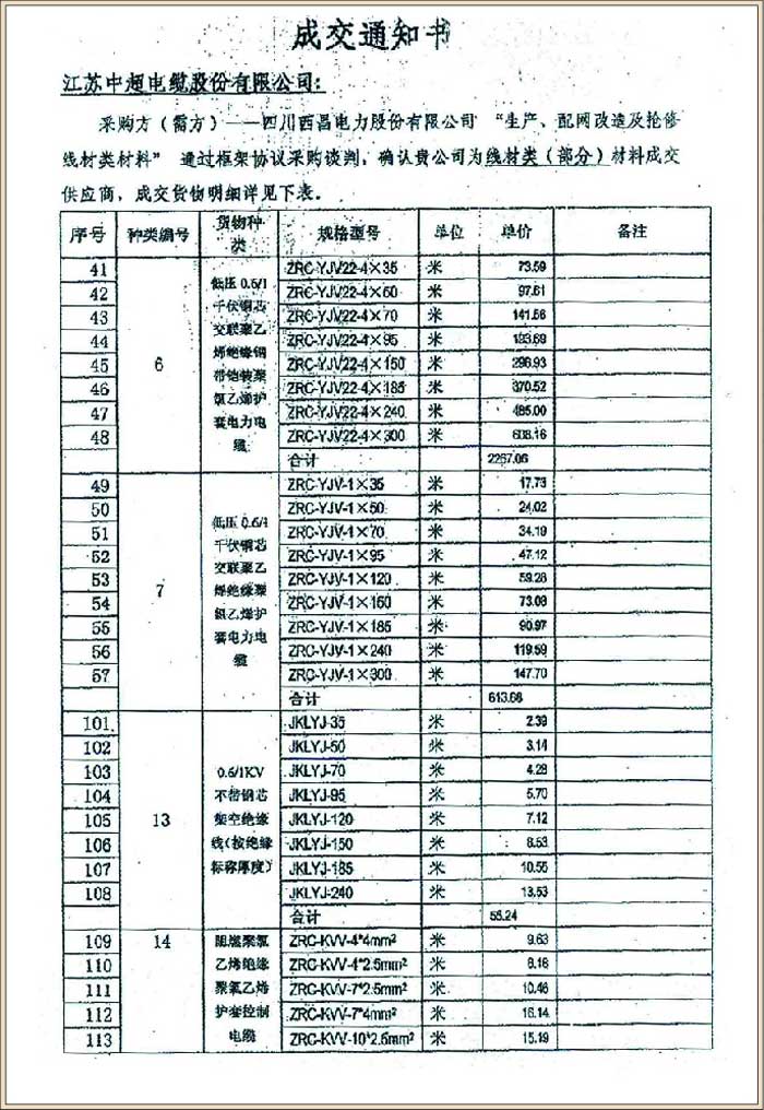 成交通知书
