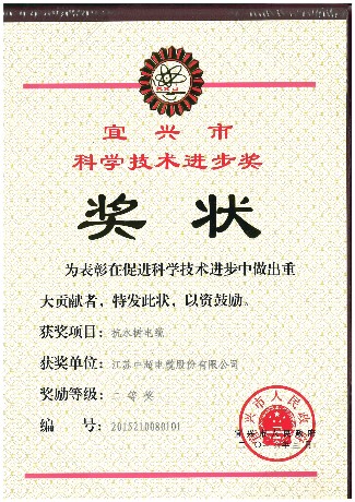 > 201603宜兴市科学技术进步奖(抗水树电缆)