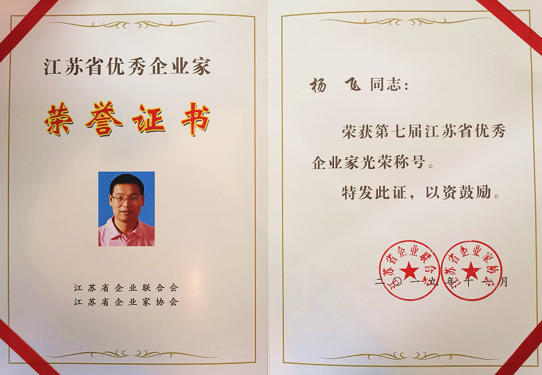 中超集团董事长杨飞荣获“江苏省优秀企业家”称号