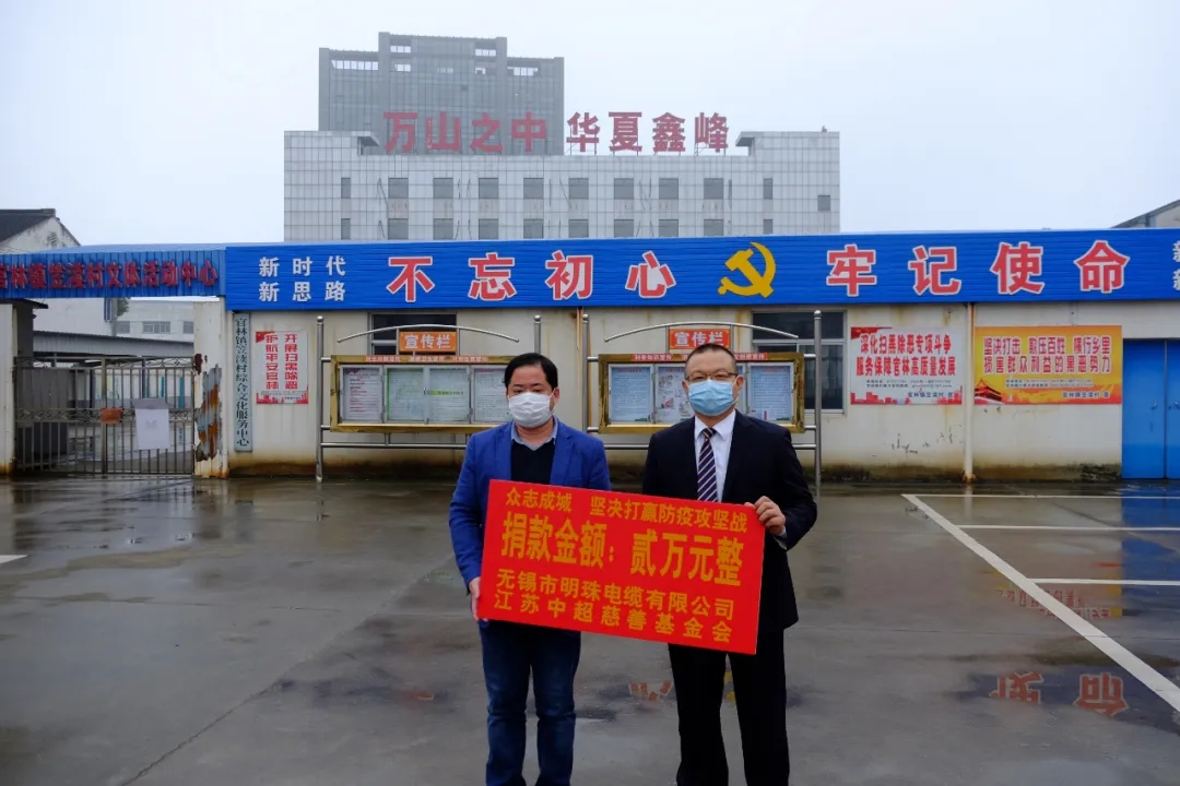 疫情的迅速蔓延带来的是口罩、消毒液等防护物资的紧缺,明珠电缆多方筹措采购到一批防疫物资后,立即从中抽调出500只口罩和部分消毒用品送至笠渎村委,支援一线防疫工作。明珠党支部还组织员工开展了爱心捐款行动,党员、领导干部带头捐款,第一时间将两万元爱心款赠予笠渎村村委。