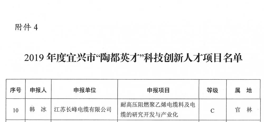 2020年初,中超控股旗下子公司长峰电缆收到了宜兴市财政局一笔关于“陶都英才”的拨款奖励,意味着公司的研发项目又一次得到了认可!