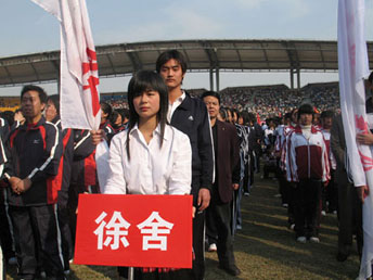 杨健(中二)担任徐舍镇职工运动员代表团旗手