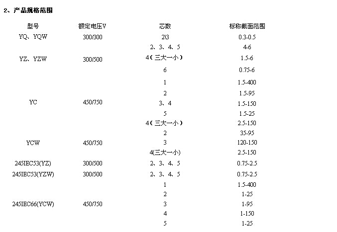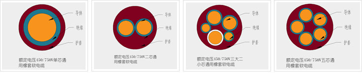 本产品适用于交流额定电压450/750V及以下家用电器、电动工具和各种移动式电器设备的铜芯橡皮绝缘橡皮护套软电缆。