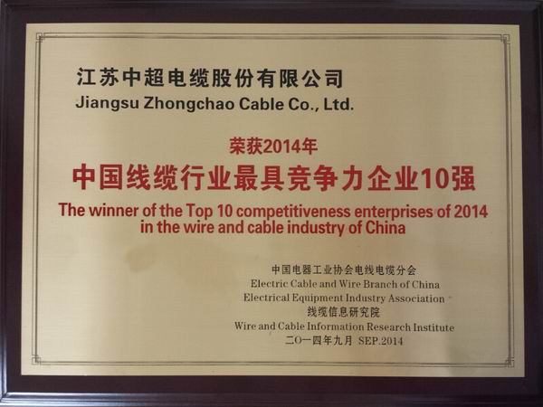 Honor > 中国线缆行业最具竞争力企业10强