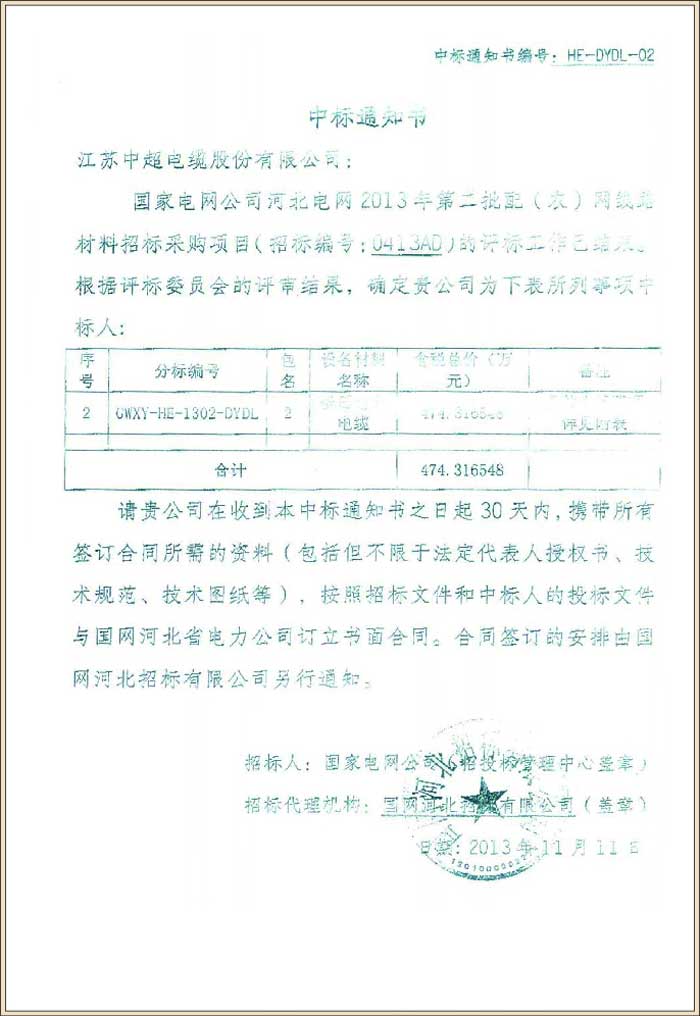 国家电网公司河北电网2013年第二批配(农)网线路材料协议库存招标采购项目(中标号HE-DYDL-02)