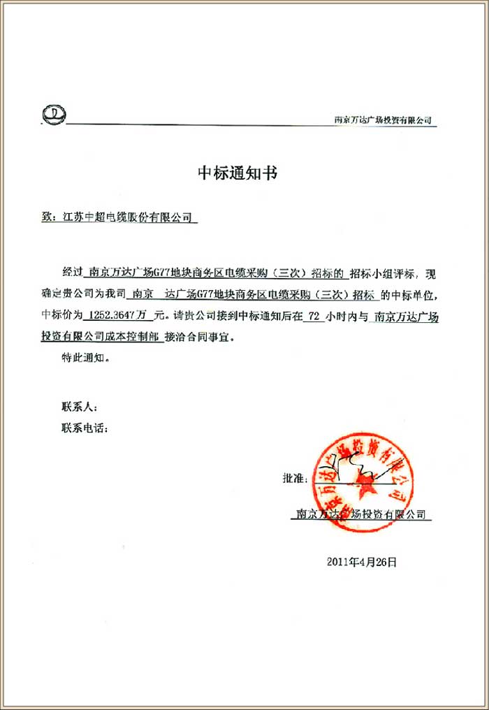 南京万达广场G77地块商务区电缆采购(三次)招标