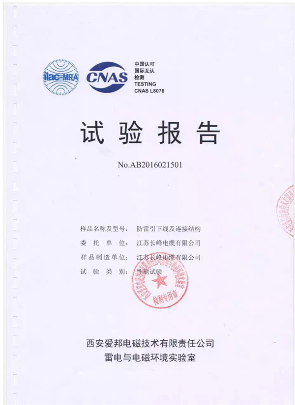 此次长峰合金电缆通过防雷冲击试验检测,在合金电缆行业处于领先地位,不仅拓宽了合金电缆的用途,而且在风力发电及类似防雷线路上可有效替代铜芯防雷引接线,从而在为用户提供可靠替代产品的同时,大幅节省产品成本,为客户创造价值。