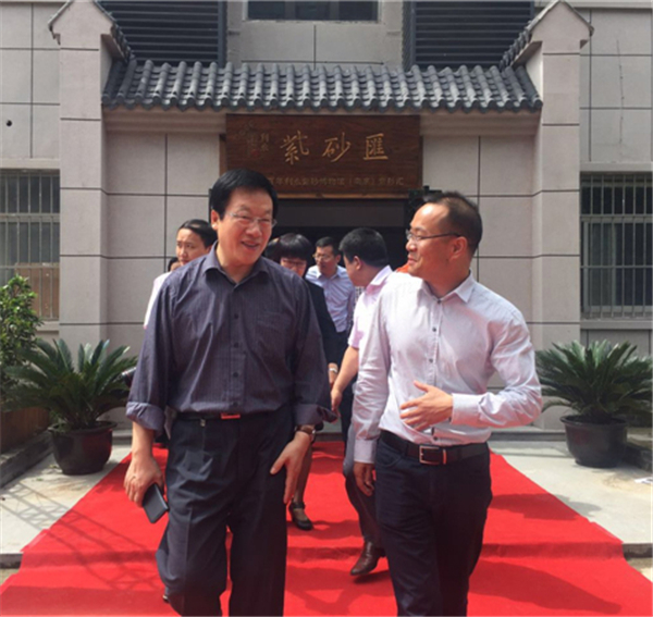 6月初,全国政协副主席刘晓峰专程前往宜兴,调研宜兴紫砂申报联合国教科文组织非遗名录项目工作,并赴中国紫砂博物馆、蜀山古南街、前墅古龙窑等地进行实地调研,杨飞也参加了此次调研活动并向与会领导作了汇报;全国政协副主席、民盟中央常务副主席陈晓光,民盟中央副主席张平,江苏省政协主席张连珍,国土资源部副部长、民盟江苏省委主委曹卫星,中共宜兴市委副书记周中平,宜兴市人大常委会副主任、民盟宜兴市委主委赵菊明等领导,在公司领导杨飞、张乃明等陪同下,专程前往中超利永南京紫砂汇,进行了参观考察。领导的关怀,各界的厚爱,大众的期望,让公司对“新文化”产业有了更大的信心,目前正在建设中的中超利永紫砂文化创意产业园,将建供春纪念馆,恢复古龙窑,建设博物馆,成立创客中心,组建紫砂大讲堂等等,中超利永将成为集紫砂艺术创作、文化传播、商业流通为一体的聚合平台,实现以紫砂为代表的全新的“文化+互联网+金融”闭环生态圈。